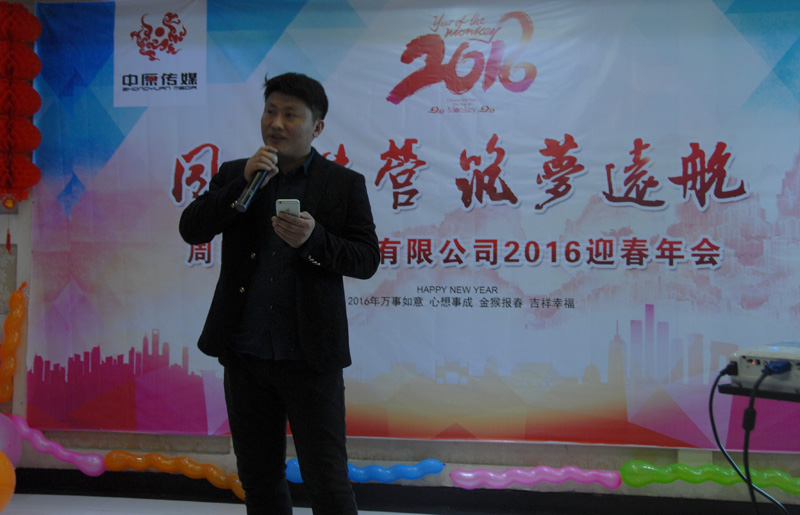 中原傳媒大掌門廖總致辭,感謝中原傳媒全體員工一年以來辛勤的付出,推動了公司長足的發(fā)展,廖總為大家總結(jié)2015,暢談2016,目標(biāo)堅(jiān)定,讓大家知道,跟著他走,有肉吃!領(lǐng)導(dǎo)講話飽含深情,催人奮進(jìn),我們必將強(qiáng)力助推2016年工作再上一個(gè)新臺階!